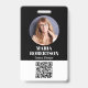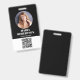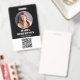 Dieses Design zeichnet sich durch einen klassischen Firmenangestellten-Standard aus, Kleinklinik für Kleinunternehmen, Name und Titel des Fotos für Sicherheit, Mitarbeiter im Business-Bereich, einfaches Grundniveau, minimales Standardbüro, Gebäude-Zugang-Veranstaltungspersonal, Foto-ID, kundenspezifisches Sicherheits-ID-Abzeichen, moderne Schwarz-Weiß-Sauberkeit mit skalierbarem QR-Code