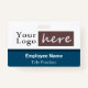 Abzeichen für Firmenname oder Firmenangestellte mit schwarz und grau gestreiftem Hintergrund leicht anzupassen. Der gesamte Text ist einstellbar. Fügen Sie Ihr eigenes Firmenlogo hinzu. Made für lange horizontale Logos. Wenn die schnelle Vorlagenanpassung für Ihr Logo nicht funktioniert, klicken Sie auf die weitere Option anpassen, um Ihr Logo zu löschen und auf die Karte hinzuzufügen. Blaue Option.