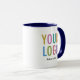 Personalisieren Sie unsere Keramik in zwei Tönen mit Ihrem Firmenlogo, dem Namen des Empfängers oder einem anderen benutzerdefinierten Text. Sie können die Kosten von Einwegbechern reduzieren und grün sein, indem Sie den Mitarbeitern ihre eigene wiederverwendbare Tasse geben. Erhältlich in 11 Unze und 15 Unze mit dunkelmarineblau innen und Griff. Auch in anderen Farben verkauft. Keine Mindestbestellmenge und keine Einrichtungsgebühr.