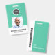 Ein modernes und einfaches Abzeichen, das nicht von den wichtigen Details ablenkt. Leicht zu lesen aus der Ferne. Fügen Sie ein individuelles Logo und Firmendetails hinzu. Fügen Sie den Namen, das Foto und den beruflichen Titel des Mitarbeiters hinzu. Die Bar der Farbe kann so angepasst werden, dass sie den offiziellen Farben des Unternehmens entspricht. Fügen Sie auf der Rückseite weitere Informationen hinzu, wie z. B. die Rücksendeadresse und die Mitarbeiternummer. Ideal für runde Logos.