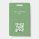 Ein einfaches Design verfügt über ein Abzeichen für Mitarbeiter mit Namen und Titel, ideal für Unternehmen, individuelle Sicherheit, perfekt für Geschäftsleute, mit einem Strichcode Bar QR-Code, Standard-Büromaterial, mit einem einfachen minimalistischen grüne Hintergrund, einfache Sauberkeit, Messe-Event.