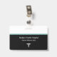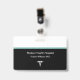 Moderne medizinische berufliche Namensschilder in aquamarinen und schwarzen Farbtönen für ein berufliches Erscheinungsbild mit einem Caduceus Symbol und Namensraum für den Namen Ihrer Gesundheitseinrichtung und des Mitarbeiternamens in einem preisgünstigen Design, das Sie online anpassen können. Erstellt für Angestellte eines Krankenhauses, Ärzteamtes, medizinischen Labradors oder Notfallmedizin.