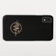 Moderne schwarze goldfarbene und weiße monogramm Skriptname iPhone case. Personalisieren Sie zunächst den Namen und das Monogramm, um Ihr eigenes einzigartiges Design zu erstellen. Entwickelt von Thisisnotme©