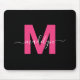 Personalisiert Girly Modern Black and Pink Script Initial Monogram Mouse Pad. Fügen Sie dem Arbeitsbereich mit diesem schicken Mauspad eine Touch femininen Charmes und Eleganz hinzu. Es verfügt über ein gewagtes magenta heiß rosa Initial zentriert auf einem schwarzen Hintergrund und schafft ein stilvolles und mädchenhaftes Design. Diese Maus-Pad eignet sich ideal für Schüler, Profis oder alle, die personalisierte Accessoires Lieben haben. Sie ist ein durchdachtes Geschenk für Freunde, Mütter, Schwestern von Studentinnenverbindungen oder für jeden, der etwas Besonderes liebt. Ideal für Ferien, Geburtstage oder jede Gelegenheit, kombiniert es Praktikabilität mit einem lustigen, polierten Flair, um Ihre alltäglichen Arbeitsaufgaben zu erhöhen.