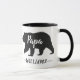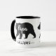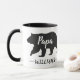 Diese rustikale Kaffeemaschine-Tasse ist mit einem schwarzen Bären auf weißem Hintergrund gestaltet. Der Bär sagt "Papa" auf ihm in weißer Typografie mit einem Namen unten, damit Sie personalisieren können. Entworfen von dem weltbekannten Künstler Tim Coffey.
