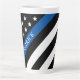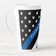 Zeigen Sie Ihre Unterstützung mit dieser dünnen blauen Linie Polizei-Fahne latte Tasse. Dieses Design verfügt über eine schwarz-weiße Polizeiflagge mit einer dünnen blauen Linie in einem Winkel und einen Namen für Sie zu personalisieren. Entworfen von dem weltbekannten Künstler ©Tim Coffey.