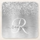 Name des Monogramms für den silberfarbenen Glitzer Rechteckiger Pappuntersetzer