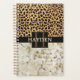 Braune Leoparden und farbenfroher Marmor am Boden. Das Zentrum ist links für Personalisierung / Personalisierung mit einem Nachnamen oder Nachnamen, und Monogramm Initial. Elegantes und stilvolles Design mit einem angesagten, Vintagen und antiken Wildkatzen-Hautmuster.