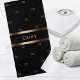 Stilschwarz mit einem Bronze-Imitat, metallisch aussehend. Personalisieren Sie Ihre Monogrammbuchstaben, -initialen und -namen und fügen Sie diese hinzu. Rose goldfarbene Buchstaben. Das Monogramm als Hintergrundmuster. Blockbuchstaben.