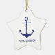 Custom Boat Name, Familienname oder Paare Namen, Initialen nautischen Anker Marine blau und weiß Star Weihnachtsschmuck Keramik. Minimalistisches und elegantes Design