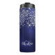 Name des Navy Blue Glitzer Monogram Skripts Thermosbecher