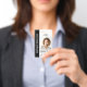 Fügen Sie der Firmenidentität eine Touch von beruflich politischem Abzeichen hinzu. Die gepflegte, moderne Ästhetik zeichnet sich durch eine kühne vertikale Spaltung aus, die eine raffinierte Kulisse für das Foto und die wichtigsten Informationen Ihres Mitarbeiters bietet.