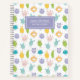Dieses bezaubernde Notizbuch zeichnet sich durch ein lustiges Muster handgezeichneter Monster in lila, Limettengrün, Aqua, Gold, Orange und Hellrosa aus. Ideal für Back to School und einfach zu personalisieren für ein großartiges Geschenk! Auf der Rückseite sind die diagonal weißen Streifen über einem lila passenden Lavendel.