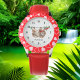 Kinderuhr aus Edelstahl mit rotem Lederarmband