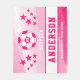 Personalisierte Fußball-Flitterwoche für Fußballspieler, die keine Tore auf dem Feld schießen, und für ihre Eltern, ihre Kinder zu unterstützen und bei kalten Spielen warm bleibe! Ein einzigartiges Teamgeschenk für Reiseturniere. Das Design umfasst einen Fußball, der mit der einheitlichen Nummer des Spielers abgestimmt ist, einen benutzerdefinierten Text für den Vor- und Nachnamen des Spielers und einen modernen Text für den Namen der Fußballmannschaft. Das stilvolle und moderne Design besticht durch eine sportliche Auswahl an Jersey-Schriften und einfache horizontale Streifen mit Sternakzenten. Das Farbschema der rosa Wasserfarbe kann so geändert werden, dass es mit den Teamfarben abgestimmt wird.