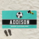 Name des personalisierten Aquamarinen Fußballspiel Strandtuch