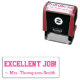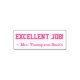 Dieses Design der Briefmarke beinhaltet die Meldung "EXCELLENT JOB!" und einen personalisierten Lehrernamen. Es könnte von einem Lehrer verwendet werden, während er Aufgaben einstuft, um einen Schüler anzuerkennen, der eine besonders gute Arbeit geleistet hat.