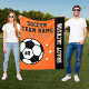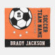 Personalisierte Fußball-Fleecedecke für Fußballspieler, wenn sie keine Tore auf dem Feld schießen, und für ihre Eltern, ihre Kinder zu unterstützen und bei kalten Spielen warm bleibe! Ein einzigartiges Teamgeschenk für Reiseturniere. Das Design umfasst einen Fußball, der mit der einheitlichen Spielernummer des Spielers abgestimmt ist, einen benutzerdefinierten Text für den Vor- und Nachnamen des Spielers und einen modernen Text für den Namen der Fußballmannschaft. Das stilvolle und moderne Design besticht durch eine sportliche Auswahl an Jersey-Schriften und einfache horizontale Streifen mit Sternakzenten. Das Farbschema von Orange, Schwarz und Weiß kann so geändert werden, dass es mit den Teamfarben abgestimmt wird.