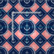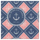 Nautische Stoffe können Sie mit Ihrem Familiennamen in einem Seil-gerahmten Kreis mit einem Muster von Ankern und Schiffsrädern in Weiß gegen navy-blaue und rosa Fliesen gerahmt mit einer Seilillusion personalisieren.