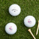 Personalisieren Sie Ihren Namen und fügen Sie ihn hinzu. Weißer Hintergrund. Dekoriert mit einem rosafarbenen Golfwagen und einem gürtelförmigen Bug. Rosa, gebogener Text.