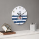 Name des Schiffes, Anker Blume Navy Blue Streifen Große Wanduhr