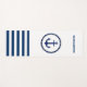 Dieses Bild zeigt einen Bootnamen und Anker auf einem marineblau-blau-weiß gestreiften Hintergrund.