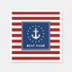 Nautical Boat Name Anchor Stars Cocktail Napkin - Rot, Weiß und Blau Streifen