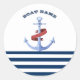 Name des Schiffes, Blaue Ankernacht, blau gestreif Runder Aufkleber