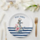 Name des Schiffes, Blumenanker, blaue Streifen der Pappteller
