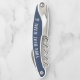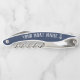 Boat trinkt, jemand? Passen Sie diesen coolen nautischen Korkenzieher mit Ihrem Bootsnamen in rustikalen, weißen Schriftzeichen auf klassisch marineblau-blauem Hintergrund an, neben einer Seil- und Ankerillustrierung.