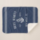 Bleibe gemütlich auf deinem Boot mit dieser coolen, maßgeschneiderten Sherpa-Decke in klassischer nautischer Marine blau und weiß. Blanket enthält Ihren Bootsnamen, Schiffsregister und Jahr in rustikalen weißen Schriftzeichen mit einer Seil- und Ankerillustrierung etabliert. Das Design wird durch die Rockstreifen-Details oben und unten ergänzt.