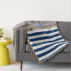 Dieses Bild zeigt einen Bootnamen und Anker auf einem marineblau-blau-weiß gestreiften Hintergrund.