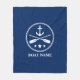 Personalisierter Name des Schiffes Nautical Anchor & Crossed Oars auf Navy Blue Custom Fleece Blanket.
