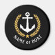 Ein Personalisierter Rundmagnet mit Ihrem Bootsnamen, Familiennamen oder beliebigem Text. Mit einem speziell entwickelten nautischen Bootsanker, goldenen Blätter und Sternemblem auf schwarz oder passen die Primärfarbe leicht an Ihr aktuelles Thema an.