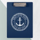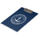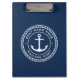 Die Zwischenablage mit einem weißen, eleganten Anker- und Seilemblem mit Ihrem eigenen Bootsnamen und dem Hagelport auf dunkelblauem Hintergrund.