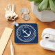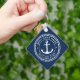 Keyring für Ihr Boot mit weißem, elegantem Anker- und SeilEmblem mit eigenem Bootsnamen und Hagelport auf dunkelblauem Hintergrund.
