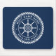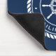Mousepad mit einem weißen, eleganten Rad- und Seilemblem mit individuellem Bootsnamen und Hagelport (oder anderen benutzerdefinierten Text) auf dunkelblauem Hintergrund.