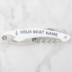 Boat trinkt, jemand? Passen Sie diesen coolen nautischen Korkenzieher mit Ihrem Bootsnamen in navy blauen Schriftzeichen und einer Ankerillustrierung an.