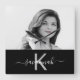 Ein schwarzer Hintergrund. Personalisieren Sie Ihr eigenes Foto. Der Text: Der Name ist weiß geschrieben mit einem modernen handgeschriebenen Stil Skript mit Swashes. Der Monogramm-Brief in Grau. Um die Swashes behalten, löschen Sie nur den Beispielnamen, verlass die Leerzeichen oder Emoji's vor und nach dem Namen. Vorlagen für einen Namen und einen Monogramm-Buchstaben. Perfekt als Geburtstagsgeschenk für Ihre beste Freundin, Mutter oder Schwester.