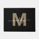 Erstellen Sie Ihre eigenen benutzerdefinierten eleganten modernen Schwarz Gold Erstklassigkeit Monogram Script Name Doormat. Diese schicke, luxuriöse Türmatte fügt jedem Eingang eine raffinierte Touch hinzu, mit ihrem einzigartigen Monogramm-Design auf schwarzem Hintergrund, mit einem vergoldeten Anfangsbuchstaben - ohne Schimmer oder Folie - gepaart mit einem fließenden weißen Skriptnamen für ein wunderbar personalisiertes Aussehen. Ideal für neue Eigenheimbesitzer, Neuvermählte oder als Hochzeitsgeschenk ist diese hübsche mit Monogramm Türmatte eine umsichtige Wahl für Party, Weihnachten oder jeden besondere Anlass. Dieses stilvolle Doormat, das perfekt geeignet ist, um einem Uni-Schlafzimmer, einem Apartment oder einer Zuhause eine luxuriöse Touch hinzuzufügen, verbindet Funktionalität mit einem Hauch von Eleganz und schafft eine einladende Note an der Haustür.