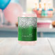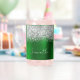 Passen Sie das moderne handgeschriebene Skript an, um Ihre eigene Dose Glas für sie zu kreieren. Fügen Sie ein Monogramm Initial hinzu, um eine erste Kombination aus Vornamen zu erstellen. Girly Imitats silber Glitzer und gebürstete reiche grüne Metal-Folie digitale Kunst (es druckt wie ein Foto auf Ihrem modernen Geschenk). Passen Sie die Farbe des weißen Schriftartes an, wenn Sie möchten.
