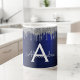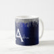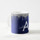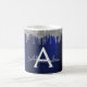 Silber und Navy Blue Imitate Foil Metallic Sparkle Glitzer gebürstete Metal Monogram Name und Initial Coffee Cup oder Tasse. Das macht den perfekten 16 Geburtstag, Hochzeit, Brautparty, Jubiläum, Babydusche oder Junggeselinnen-Abschied Geschenk für jemanden, der Lieben glamourösen Luxus und schicke Stile.