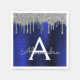 Silber und Navy Blue Imitats Foil Metallic Sparkle Glitzer gebürstete Metal Monogram Name und Initial Paper Party Napkins. Das macht den perfekten 16 Geburtstag, Hochzeit, Brautparty, Jubiläum, Babydusche oder Junggeselinnen-Abschied Geschenk für jemanden, der Lieben glamourösen Luxus und schicke Stile.
