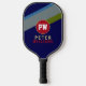 Name des Spielers auf gestreiftem Blau Pickleball Schläger