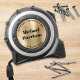 Moderne Tape Maßeinheit für Ihren Bau, Auftragnehmer, Umbau, Innenarchitektur, echtes Anwesen oder jedes andere Geschäft mit Ihrem Namen in großer fett formatierter Typografie auf einem gebürsteten Imitat Metall Hintergrund. Fügen Sie zwei Textzeilen hinzu, z. B. Ihren Geschäftstitel, Ihren Slogan oder Ihre Kontaktinformationen.