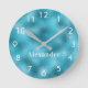 Ein ozeanblauer Imitat Hintergrund. Personalisieren und fügen Sie Ihren Namen, weiße Buchstaben. Die Zahlen der weißen Uhr.