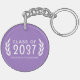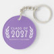 Ein stilvoller zweiseitiger Graduate Schlüsselanhänger - Keyring. Alle personalisiert, mit stylischen Typografie mit "Class Of", das Jahr des Abschlusses, der Name des Absolventen (in handgeschriebener Schrift), Schulname und natürlich ein Foto. Das Foto des Absolventen ist mit Blätter des Stammlaubels betont. Der Text und die Schnittfläche sind weiß mit dem Hintergrund in einer eleganten violetten Farbe. Wenn Sie möchten, bearbeiten Sie einfach die Hintergrundfarbe zu dem, was immer Ihr Favorit ist oder passen sogar zu der Grundfarbe Ihrer Schule. Das ist die perfekte Geschenkidee für Abschluss, die noch viele Jahre lang große Erinnerungen bringen wird.