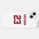 Fügen Sie einen Namen und eine(n) Zahl(n) hinzu, um diese benutzerdefinierte, weiße und tiefrote Sport Jersey inspirierte Telefonzelle zu personalisieren. Es ist ein ausgezeichnetes Geschenk für einen sportlichen Fan oder Sportler. Es stehen die Optionen zur Farbänderung und zum Ändern der Schriftart-Größe zur Verfügung.