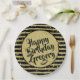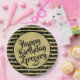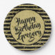 Feiern Sie Ihren Geburtstag mit diesen lustigen Tellern aus schwarz und goldgestreiftem Papier. Das trendy geometrische Muster ist ein einfaches schwarz-goldenes Streifen Muster mit Confetti. Es gibt einen goldenen Kreis in der Mitte für Ihren Text und eine Textvorlage, damit Sie ihn ganz einfach in Ihre eigenen Wörter, Namen oder Ereignisse ändern können. Dieses Design eignet sich für jede Anlässe wie Geburtstagsfeiern, Duschen, Jahrestage, Abschlüsse und vieles mehr. Ändern Sie einfach den Text, um ihn dem Event anzupassen.