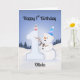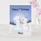 This cute snowman is building a snowy one that has a cupcake on the top to celebrate someone's 1st birthday. Add the child's name at the bottom to make it extra special.